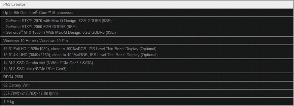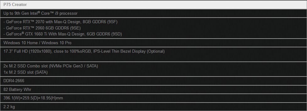 Новые ноутбуки MSI P65 и MSI P75 Creator с первыми в мире процессорами 9-го поколения Intel Core i9